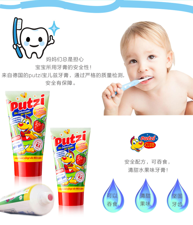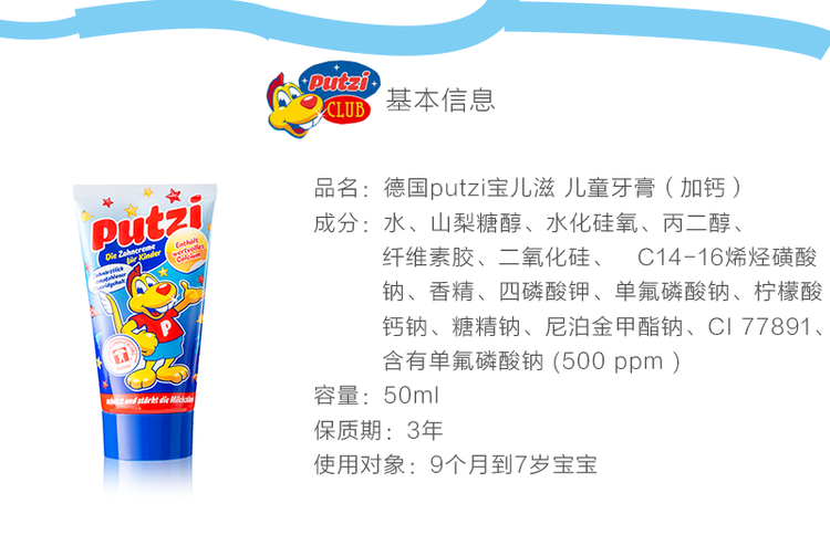 宝儿滋putzi 儿童可吞食加钙牙膏 50ml