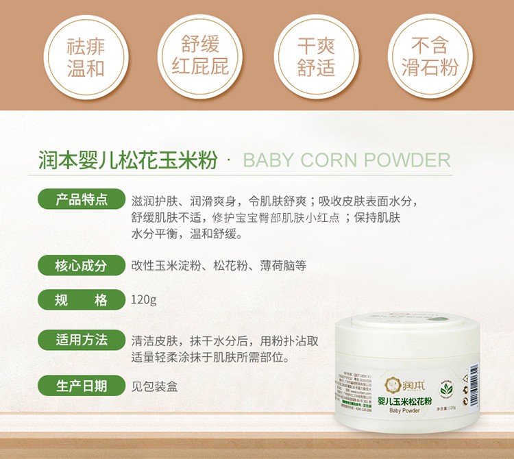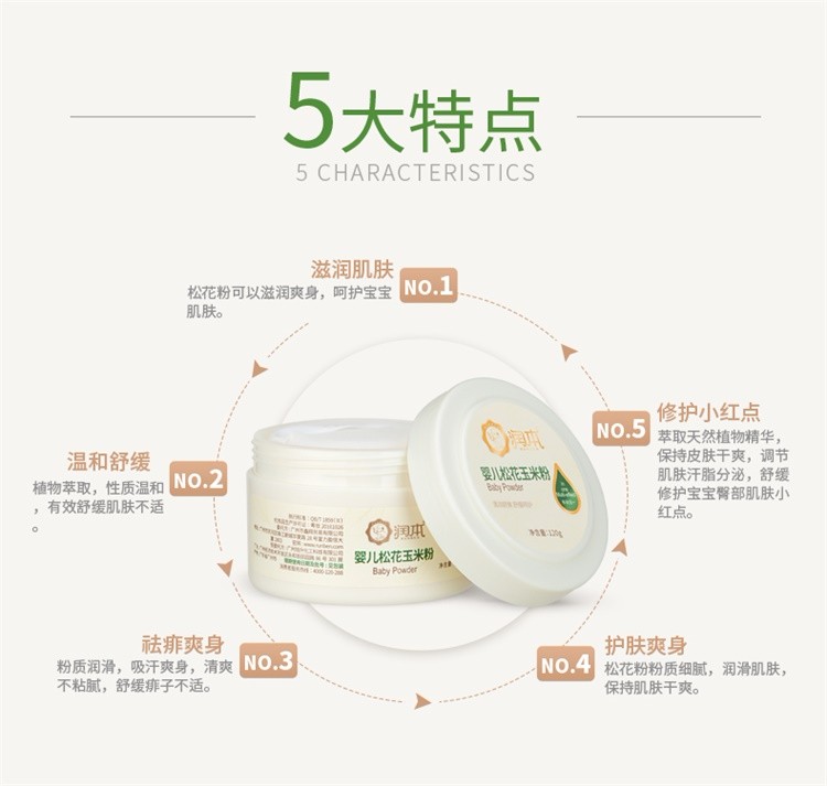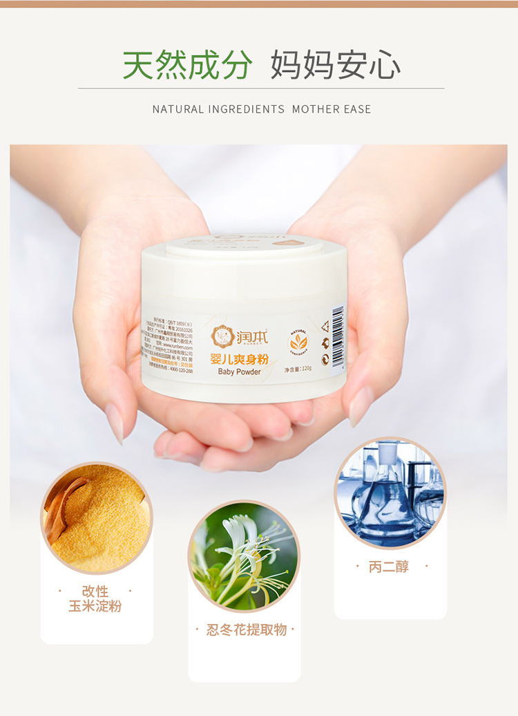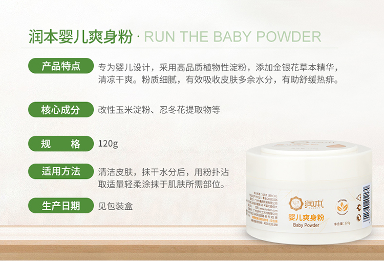 润本 金银花婴儿爽身粉 送粉扑 120g
