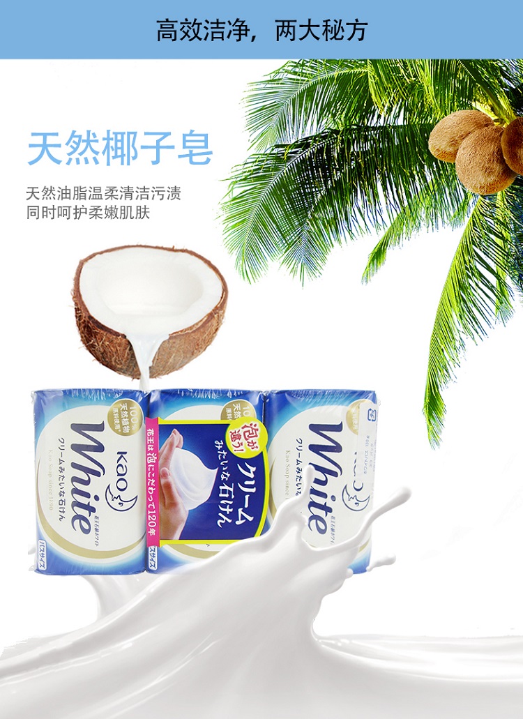 花王 泡沫保湿牛奶沐浴香皂 130g*3块(2组装)
