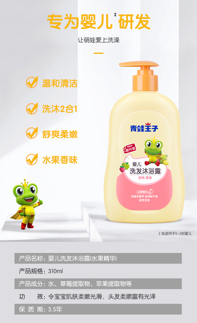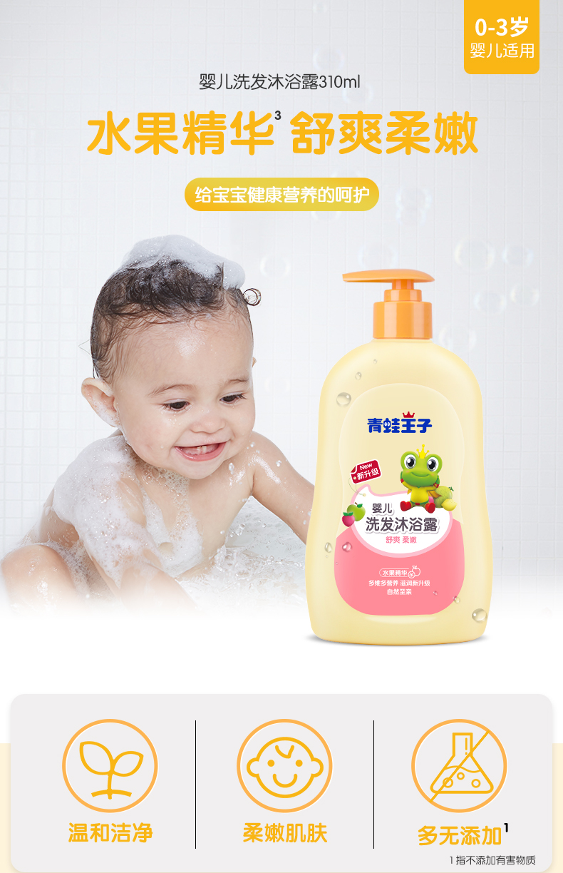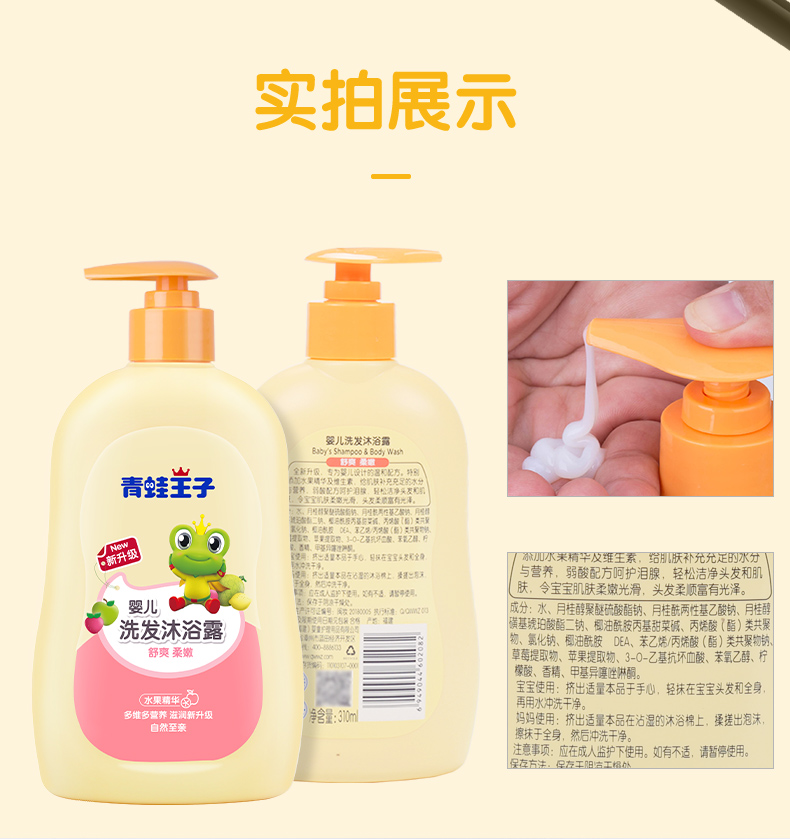 青蛙王子 婴儿洗发沐浴露 水果精华310ml*6瓶