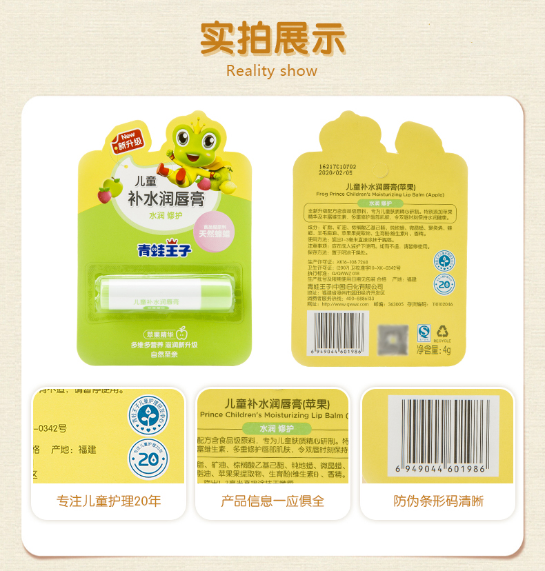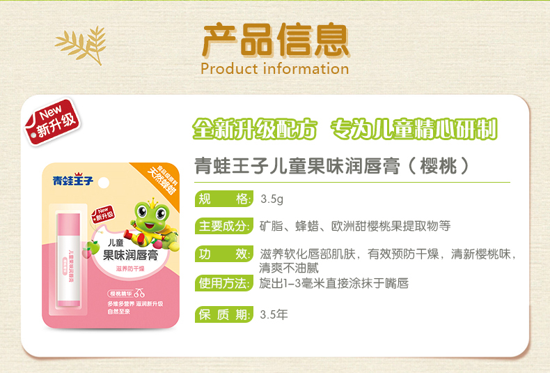 青蛙王子 儿童果味润唇膏 樱桃味 3.5g*12支