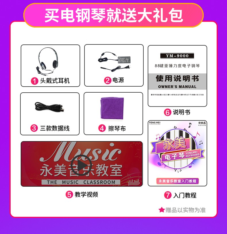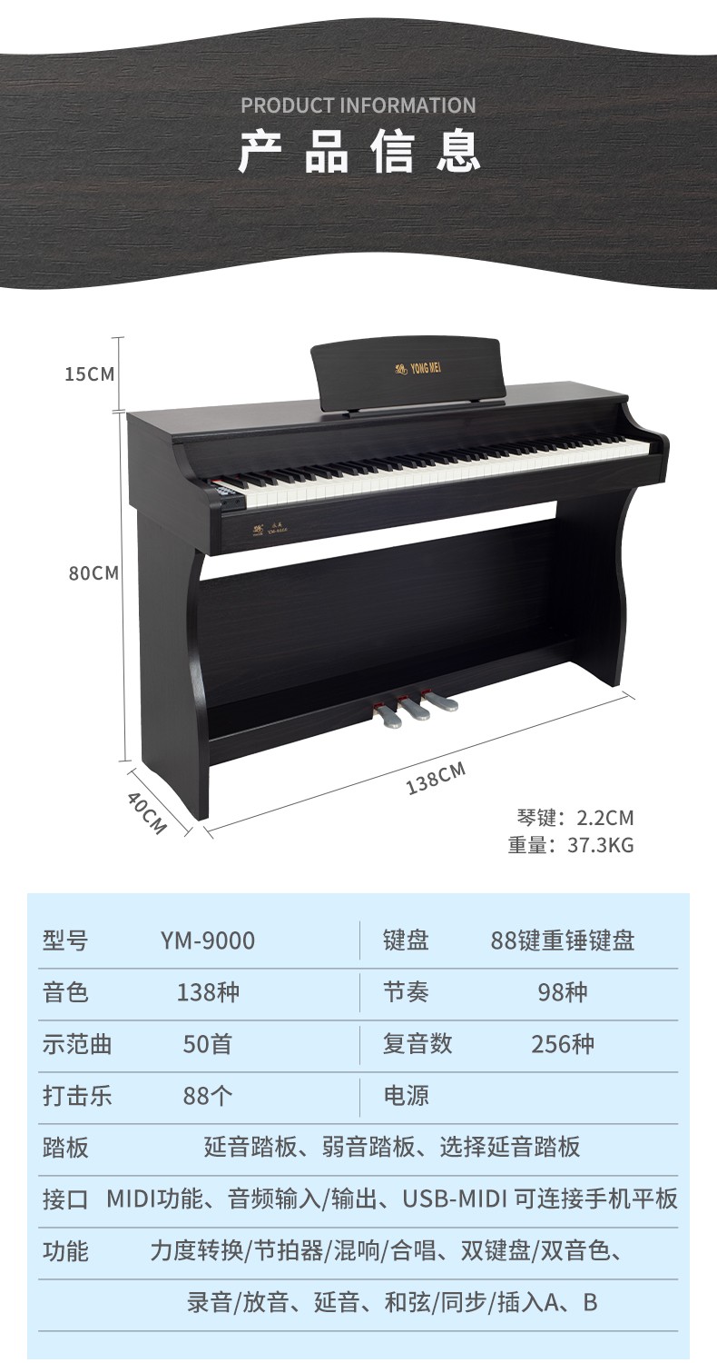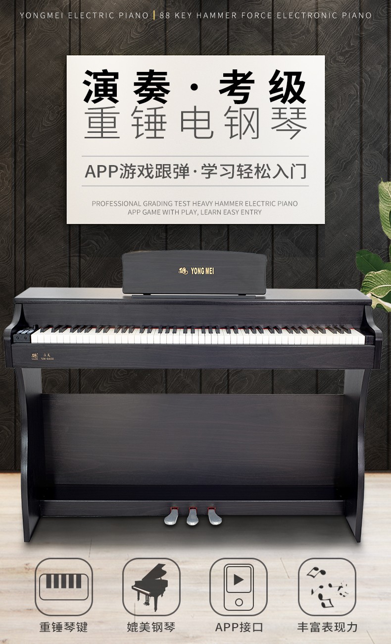 永美 电钢琴88键重锤智能数码 YM-9000