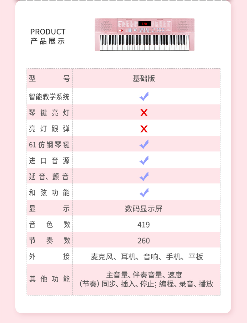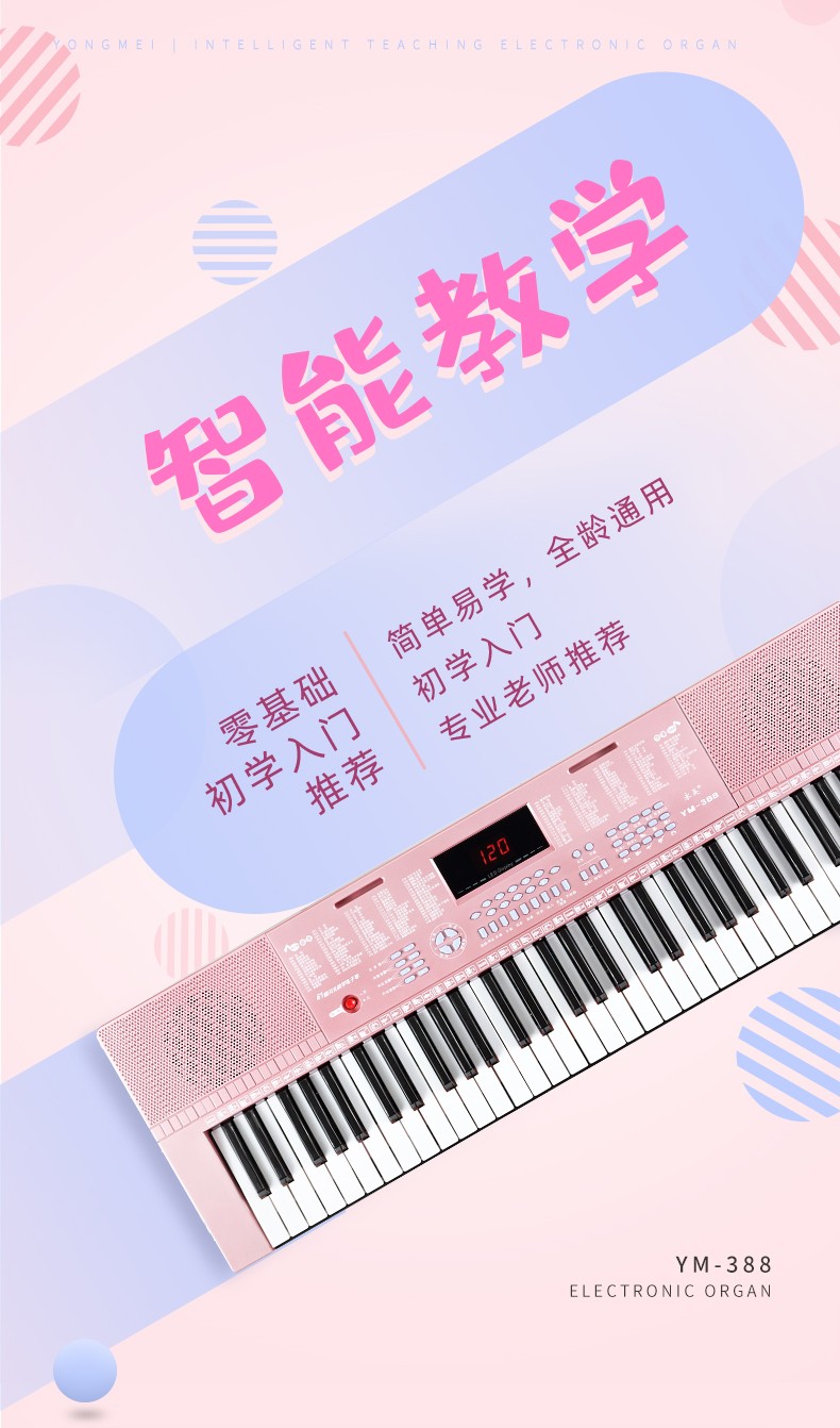 永美电子琴成人儿童幼师专用 61钢琴键 YM-388