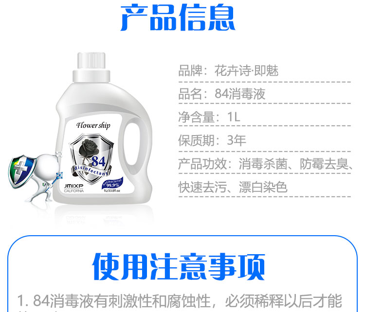 花卉诗 84消毒液1000ml (杀菌率99.99%)