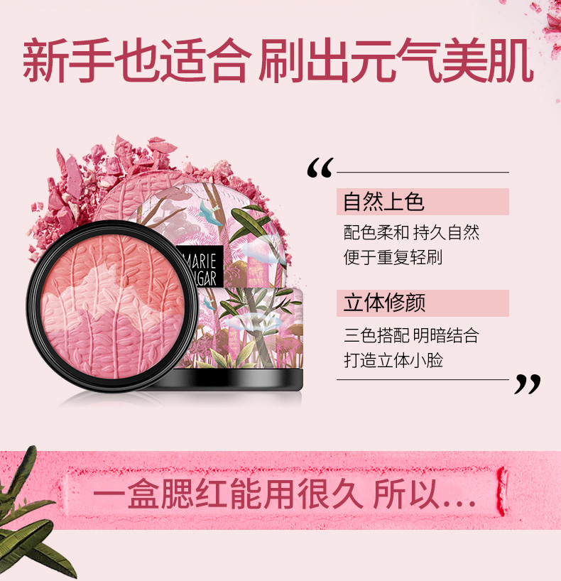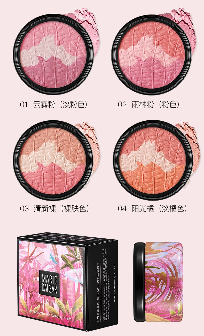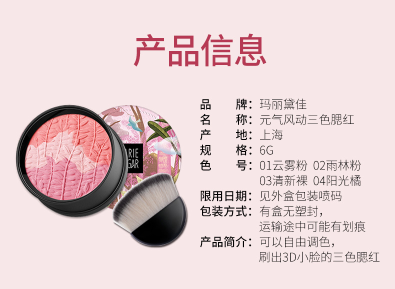 玛丽黛佳 元气风动三色腮红 云雾粉6g