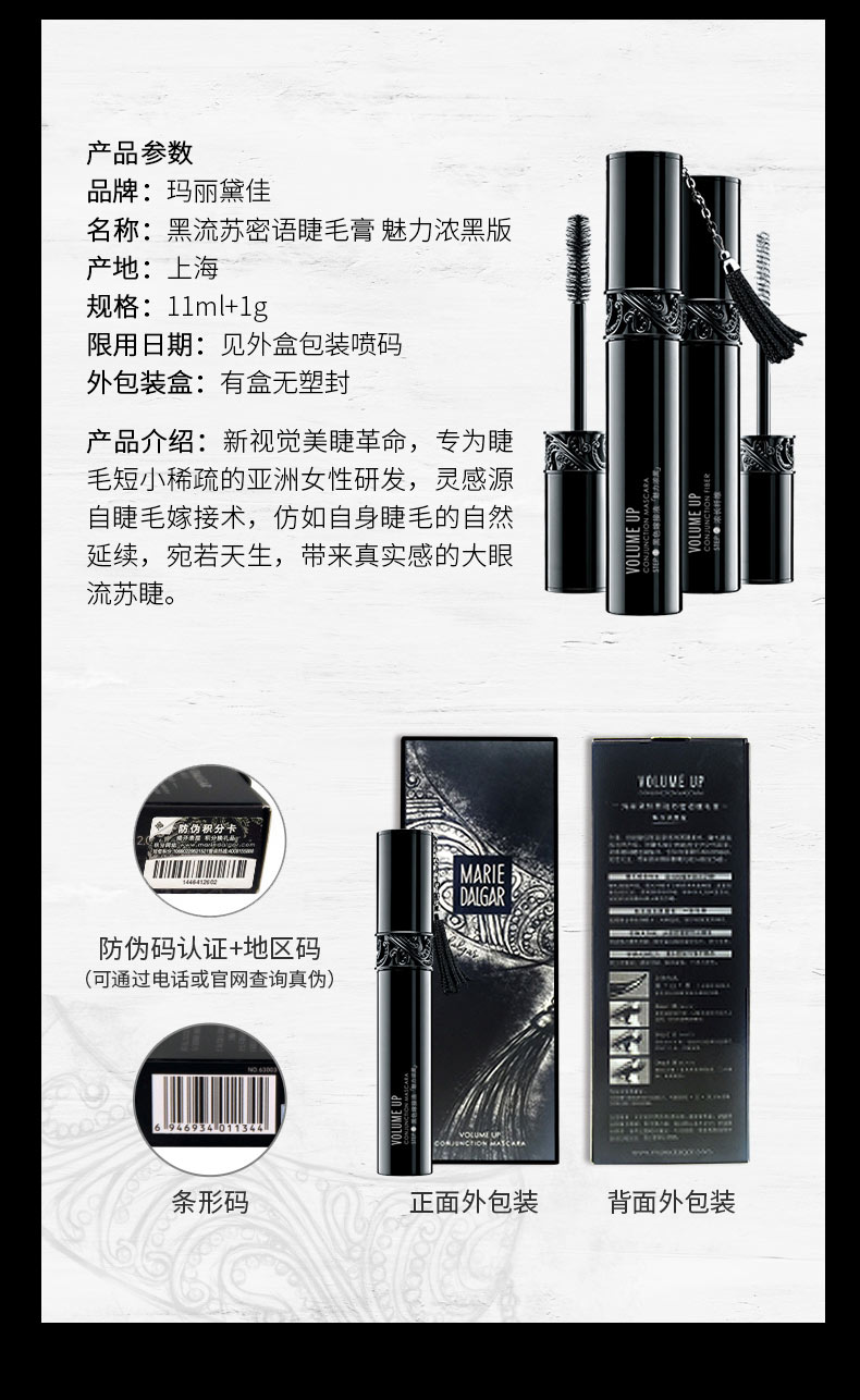 玛丽黛佳 睫毛膏 魅力浓黑版 11ml+1g