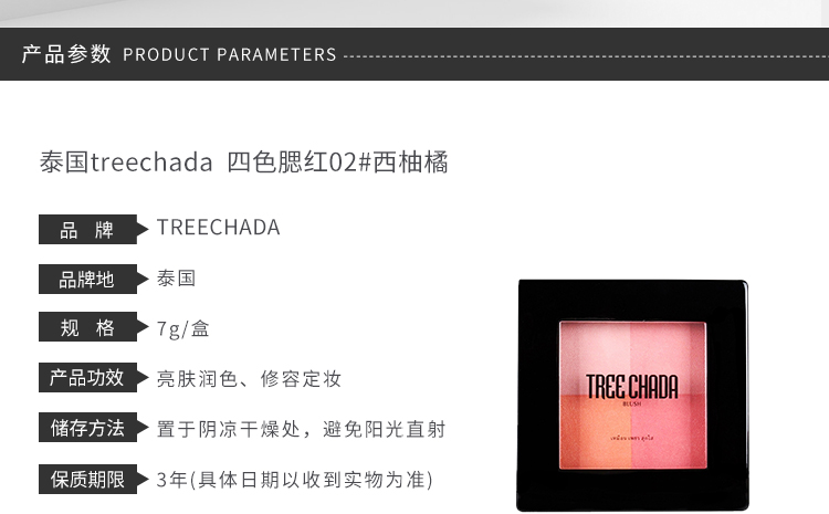 TREECHADA 四色腮红 02# 西柚橙 7G