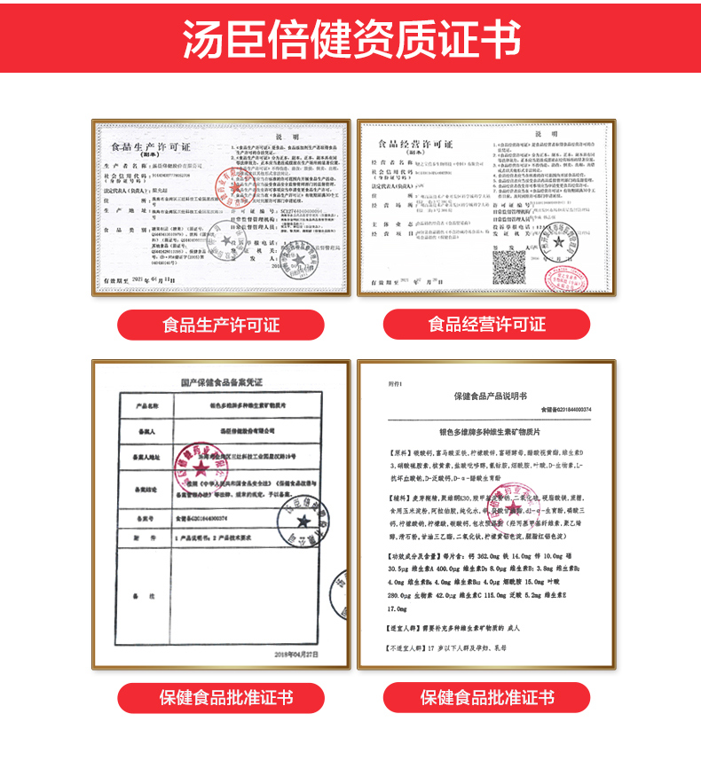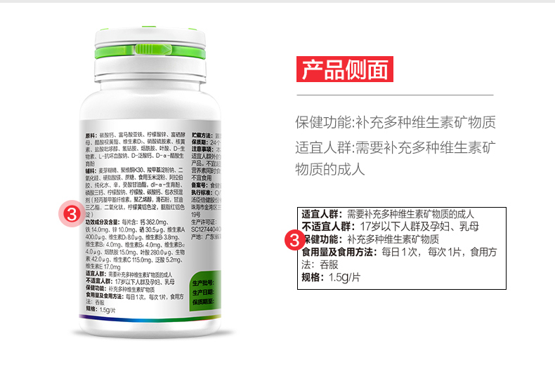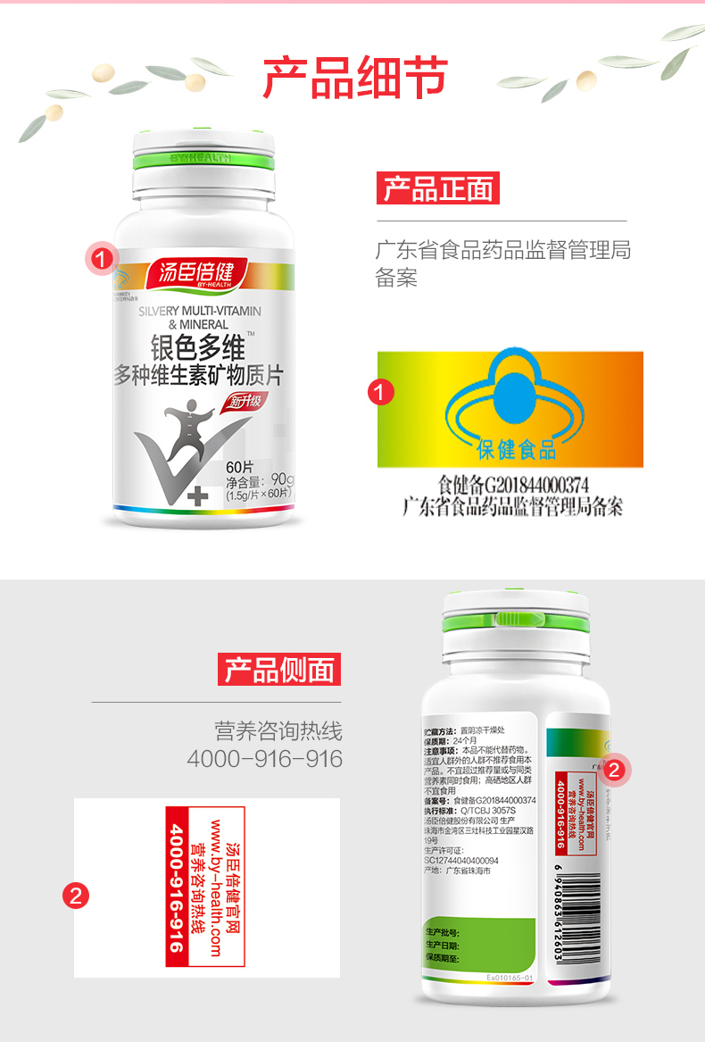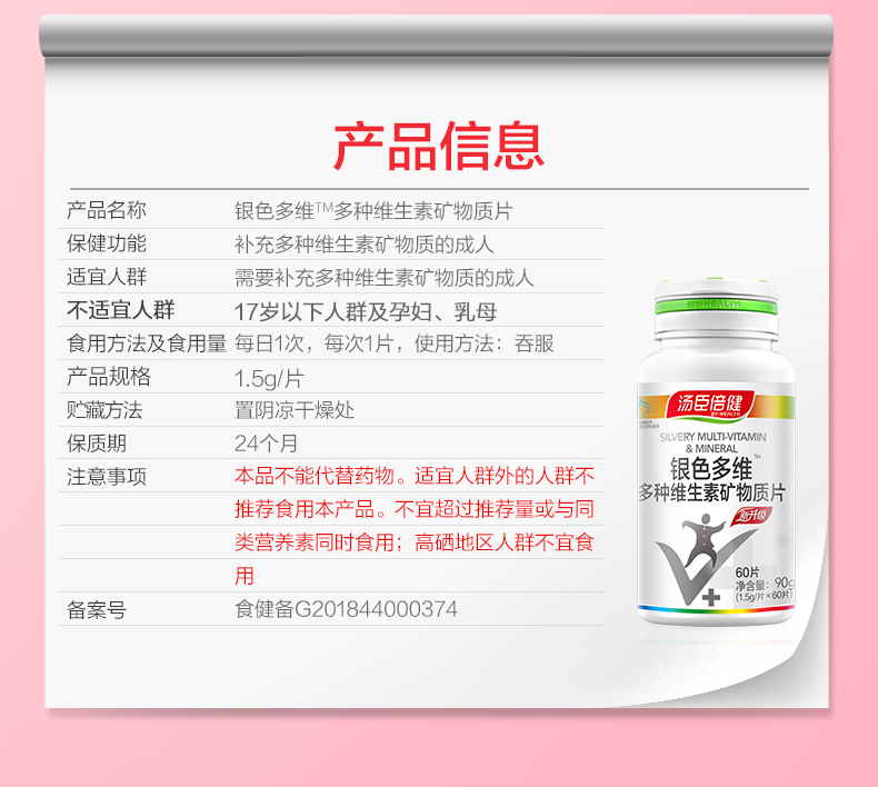 汤臣倍健 银色多种维生素矿物质片 1.5g*60片/瓶