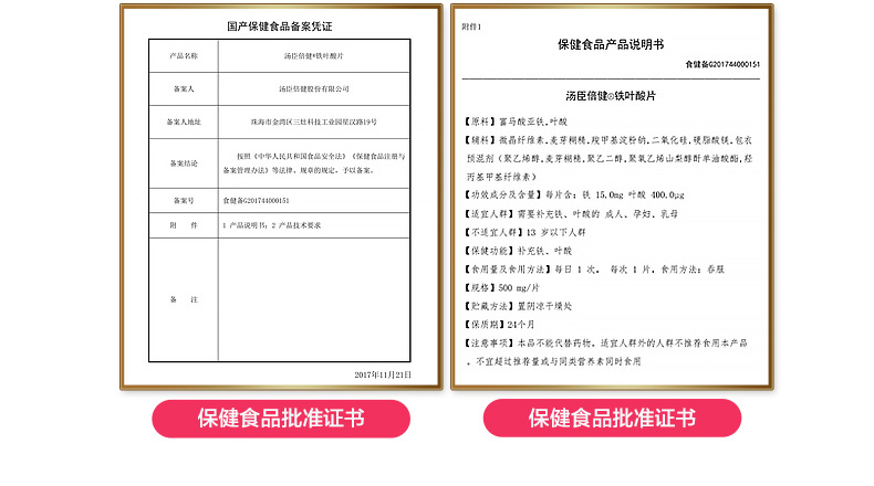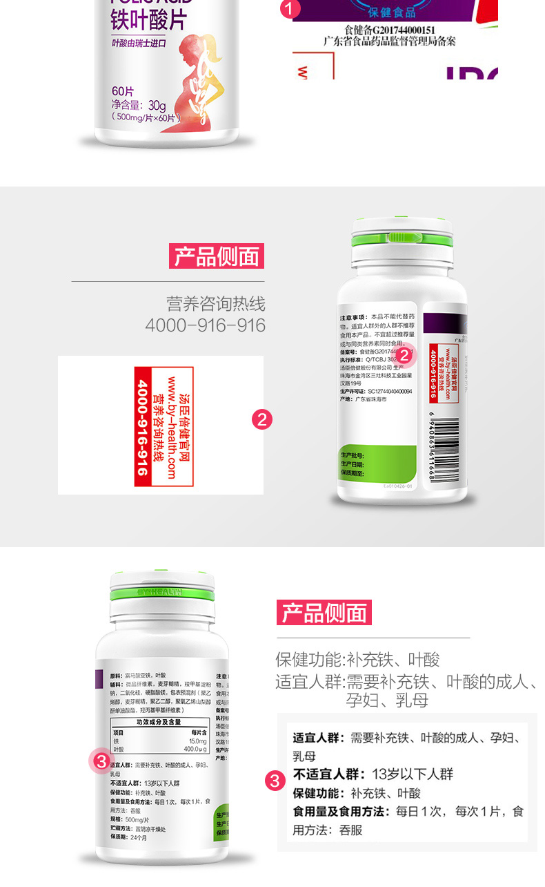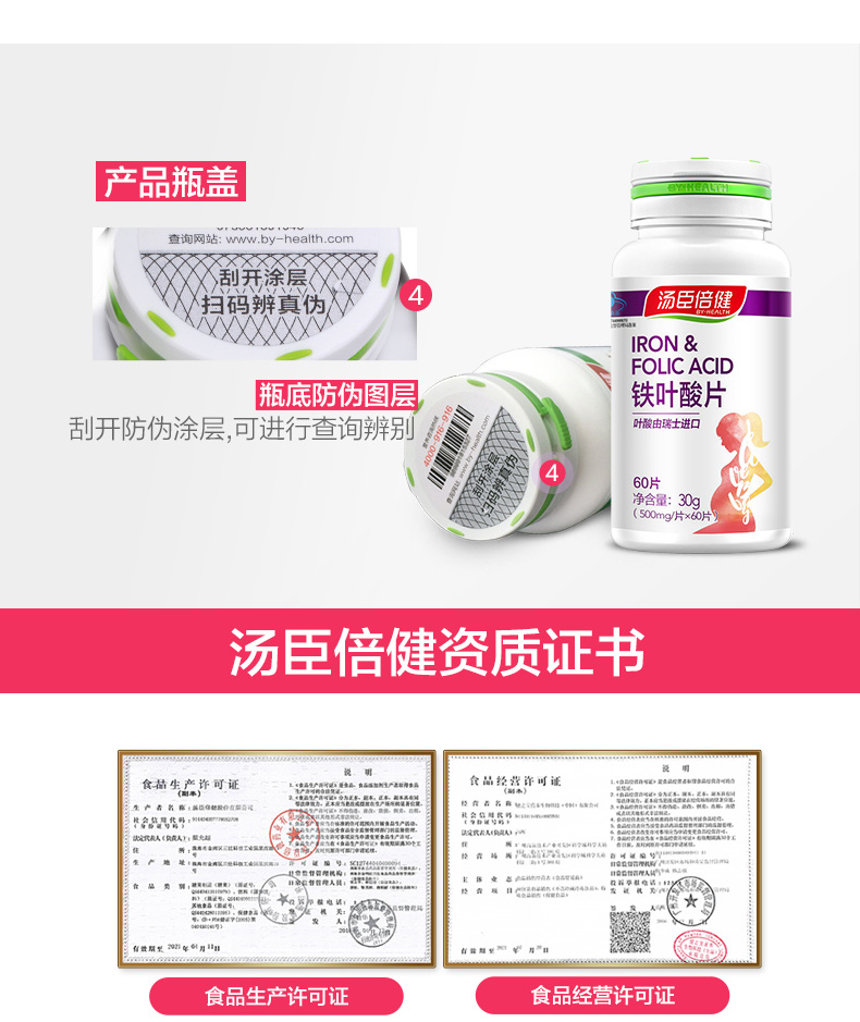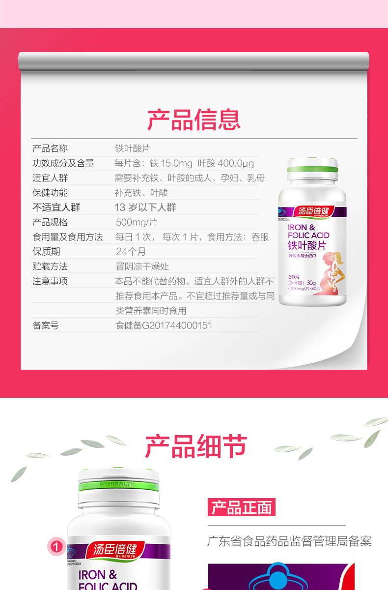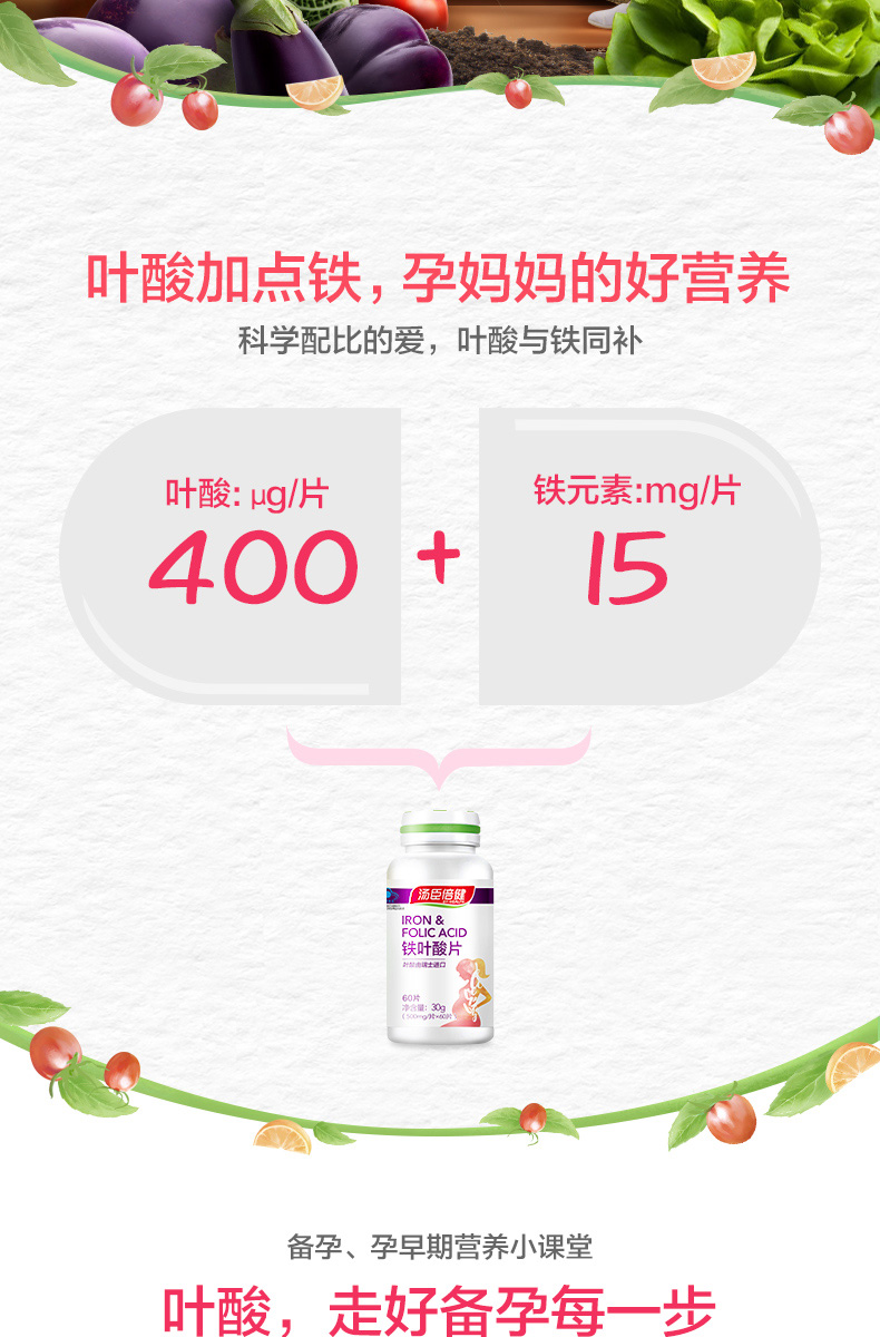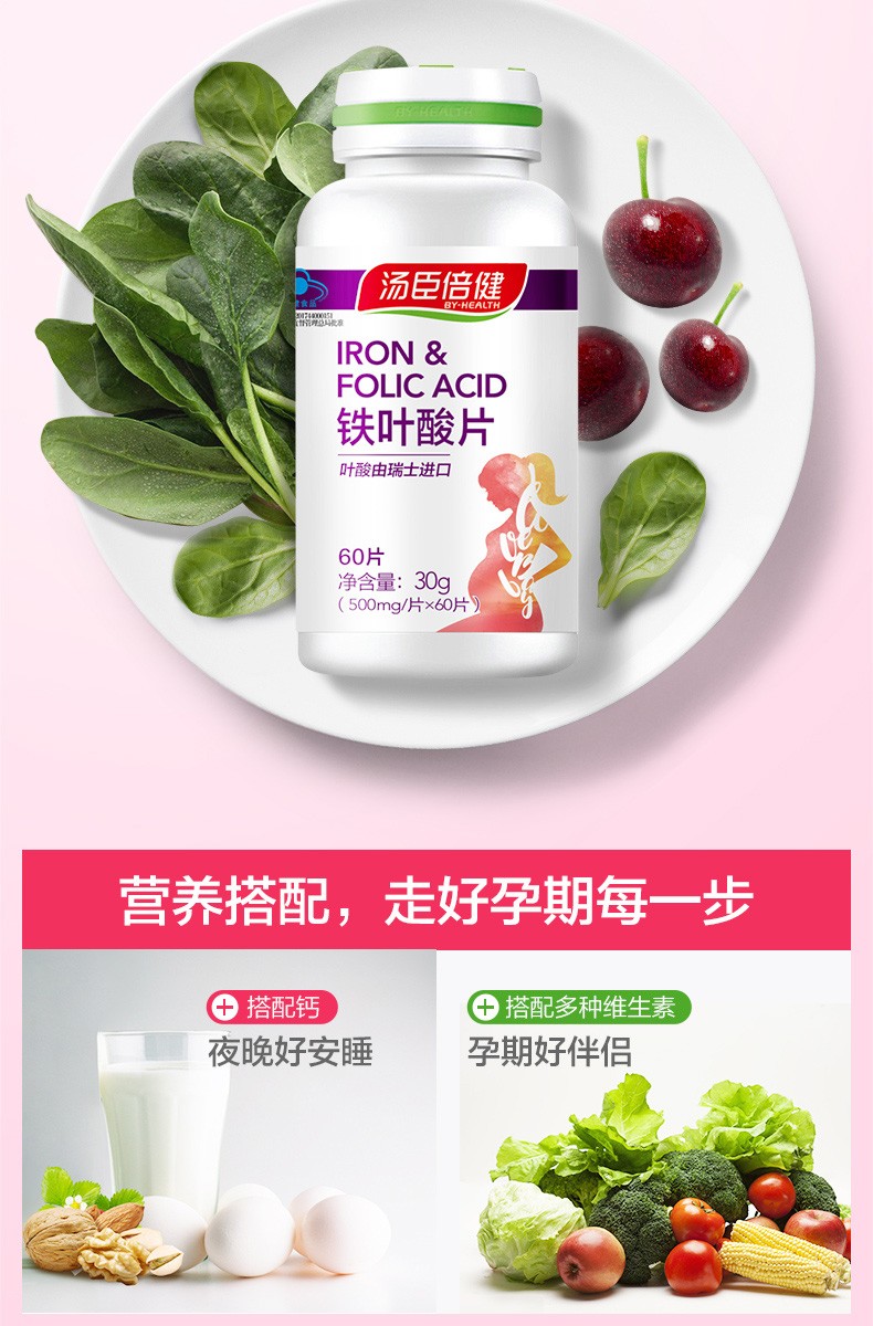汤臣倍健铁叶酸片 500mg*60片/瓶