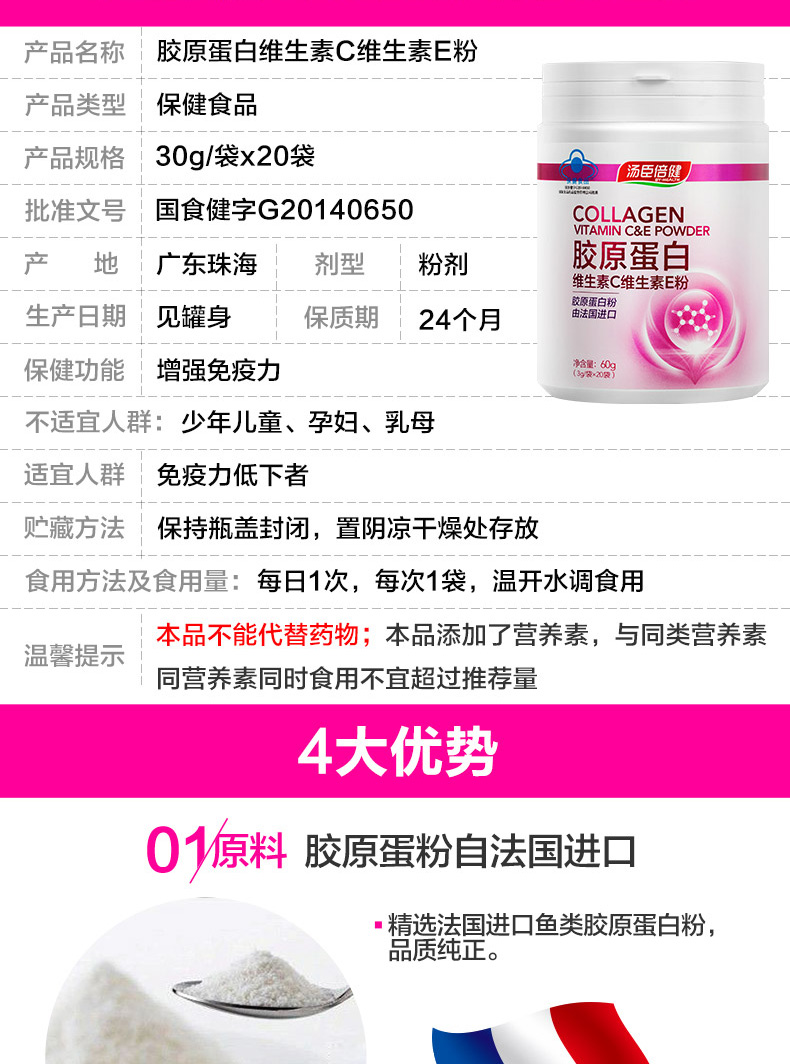 汤臣倍健 胶原蛋白维生素C维生素E粉 3g*20袋