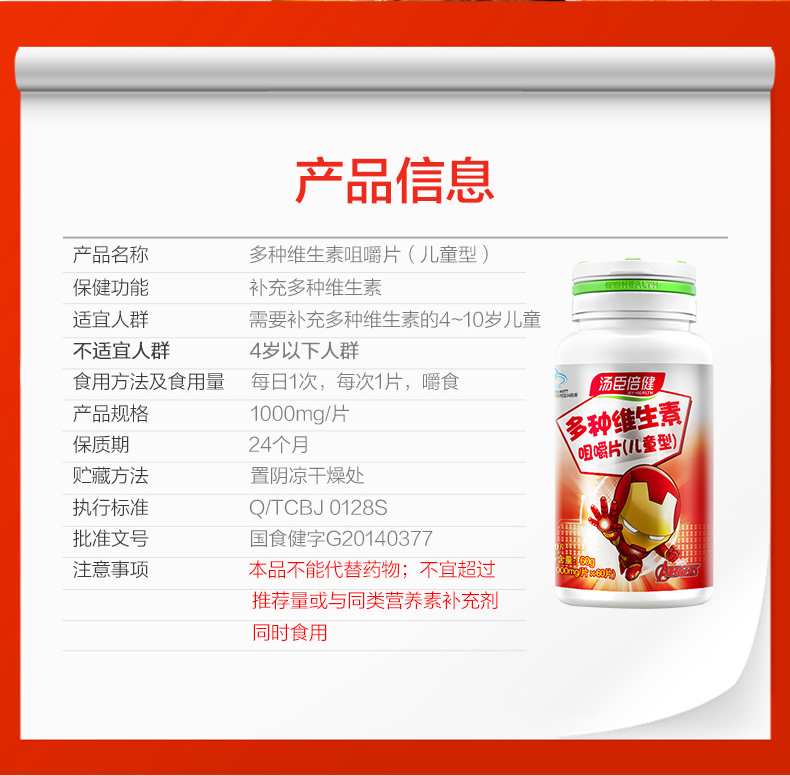 汤臣倍健 儿童型多种维生素咀嚼片 1000mg*60片