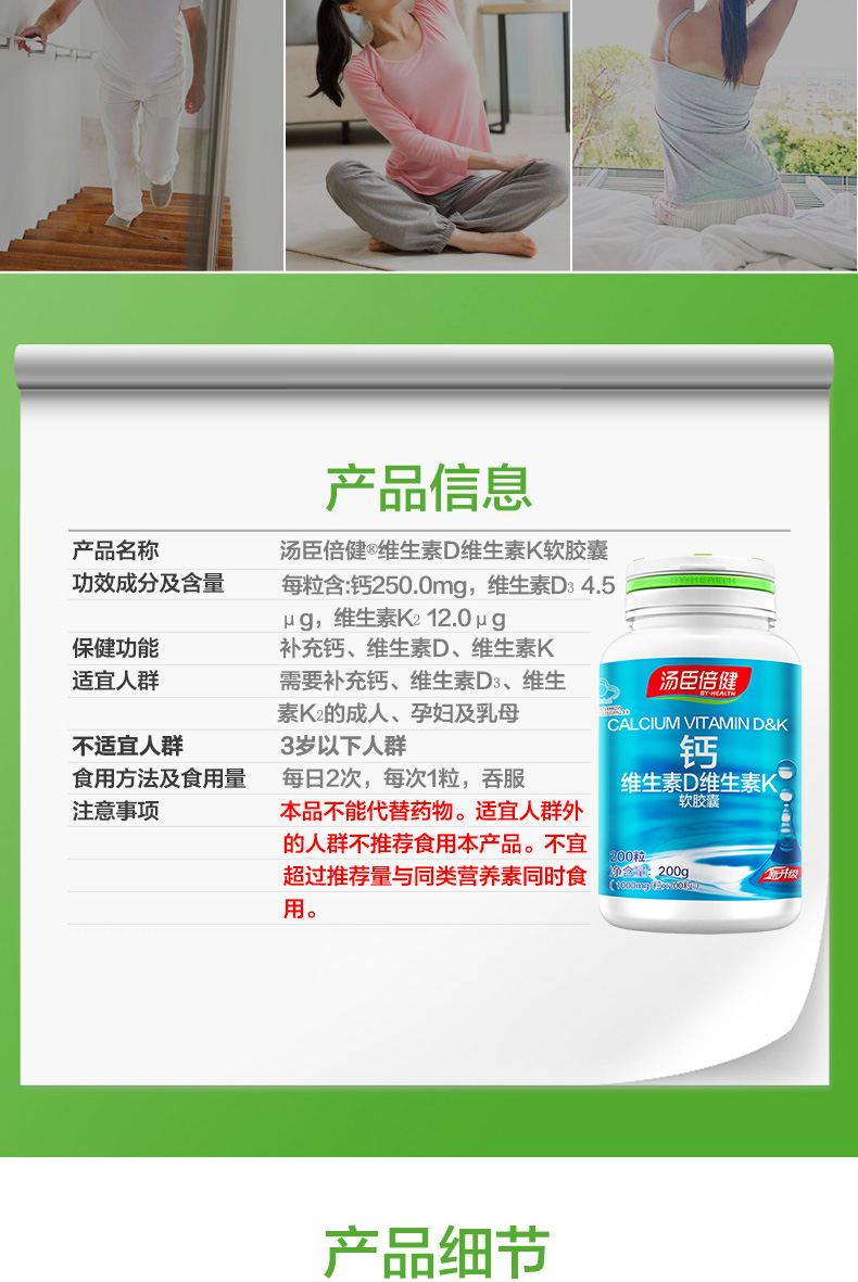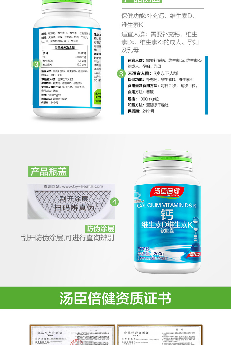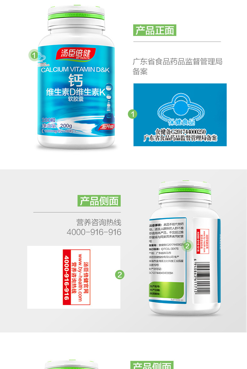 汤臣倍健 钙维生素D维生素K礼盒套装 200粒*2瓶