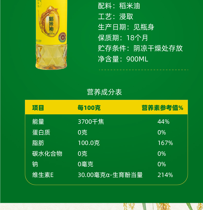 翠翠润稻米油900ml*4