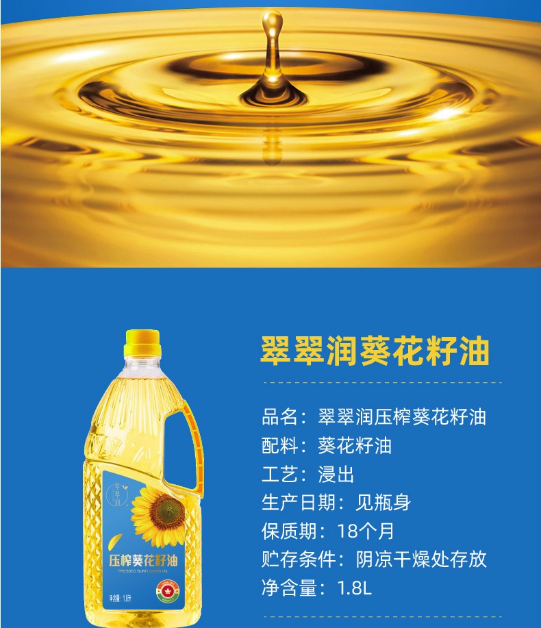 翠翠润压榨葵花籽油1.8L*2