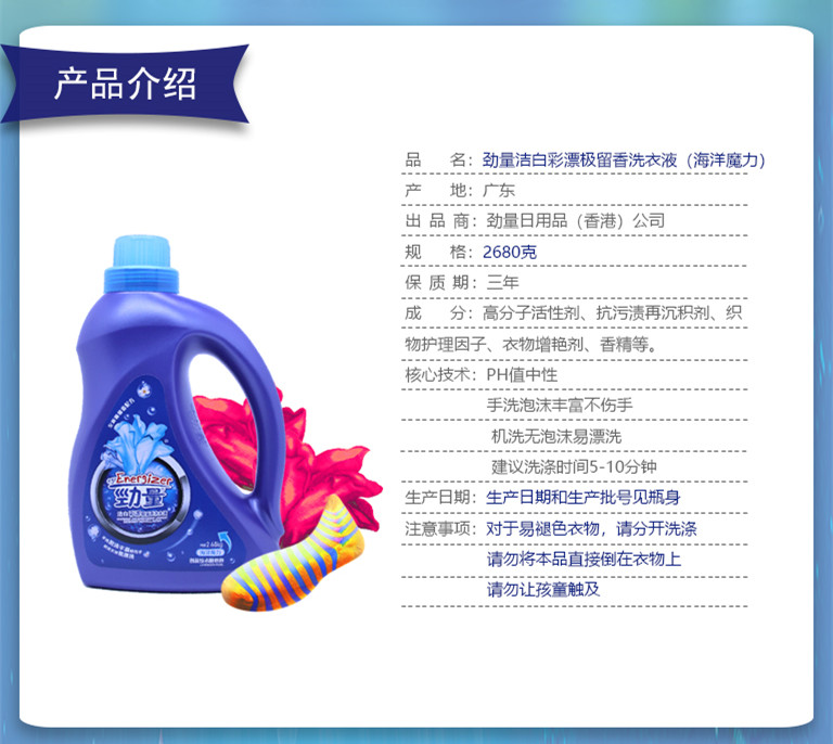 2.68L劲量洁白彩漂极留香洗衣液 海洋魔力