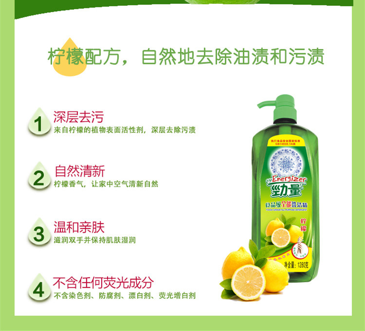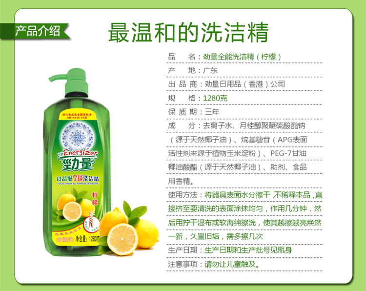 1280劲量食品级全能洗洁精.柠檬 /3支装(绿瓶)