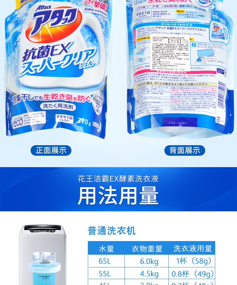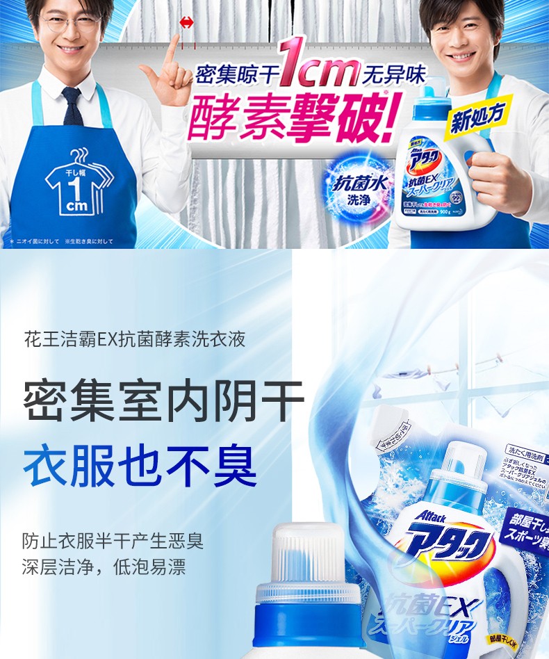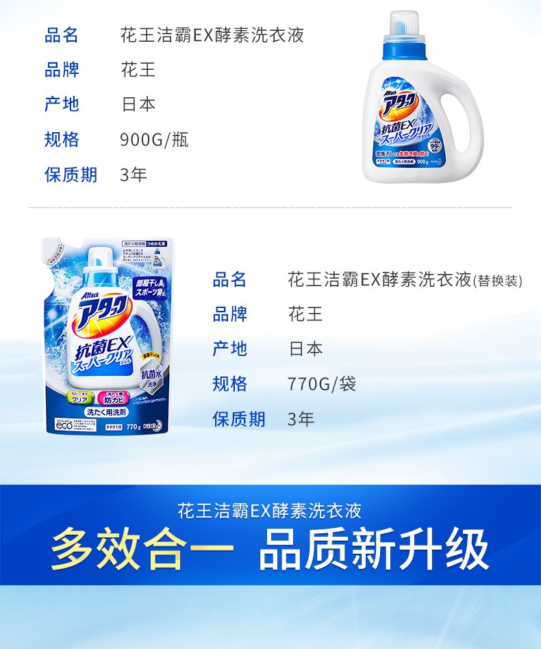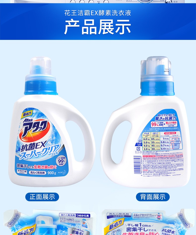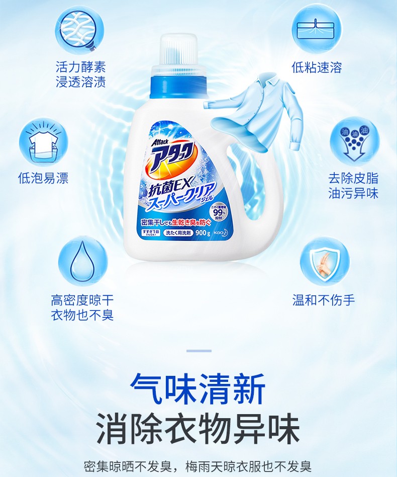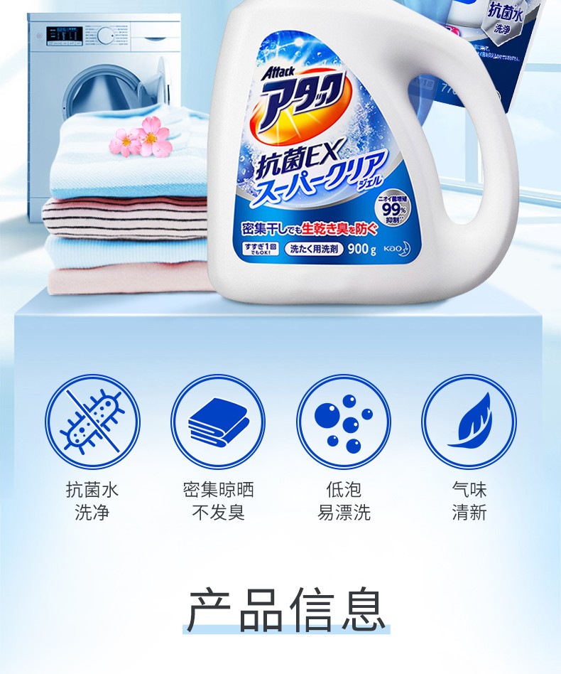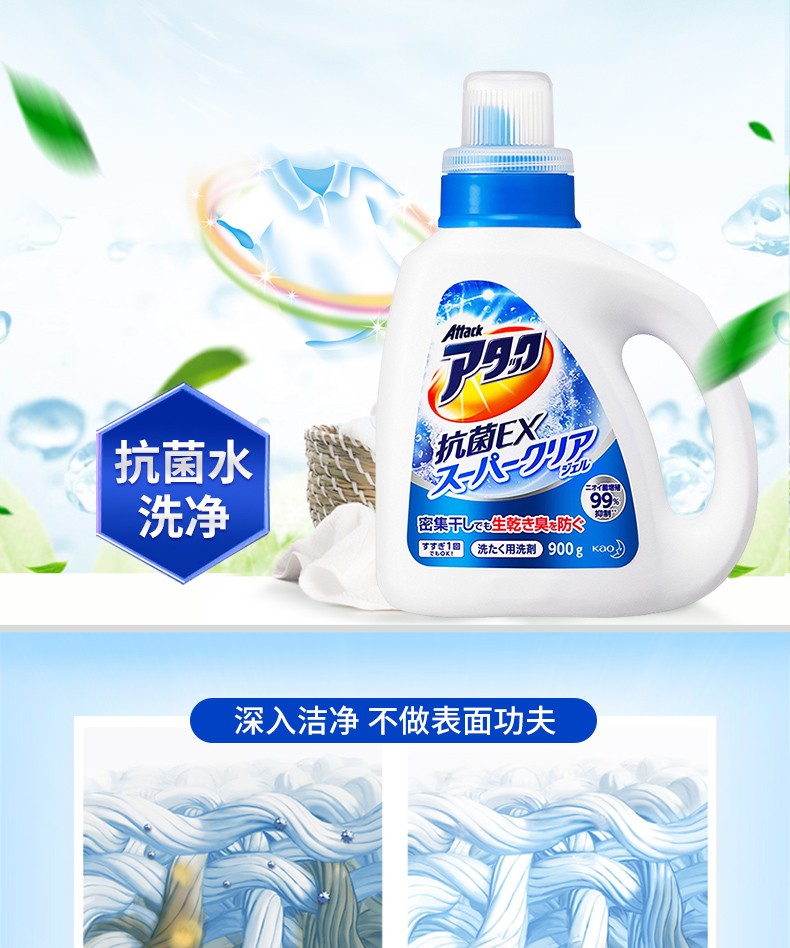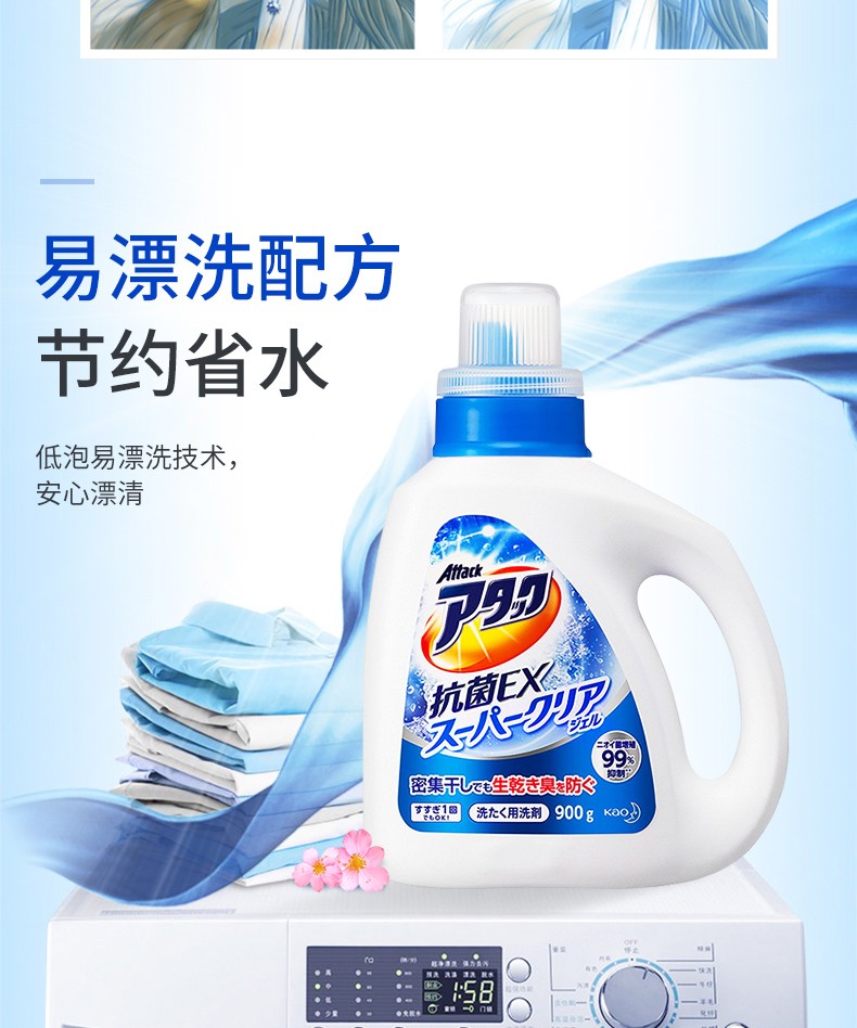 花王(KAO)日本进口洁霸草本清香洗衣液 瓶装900g