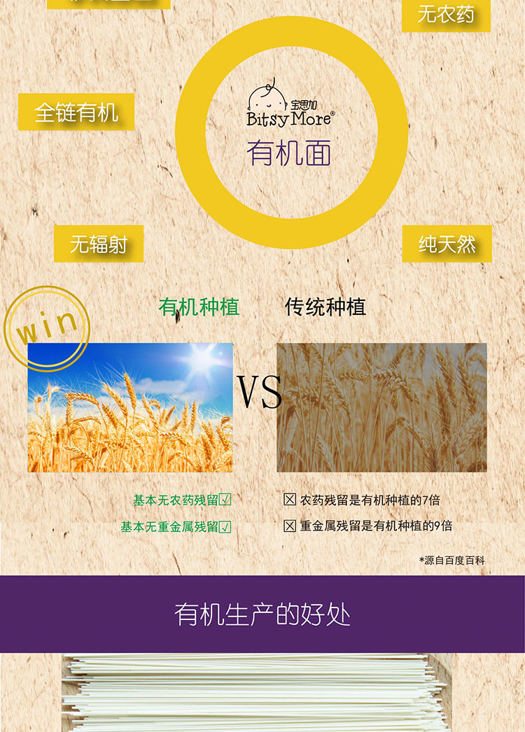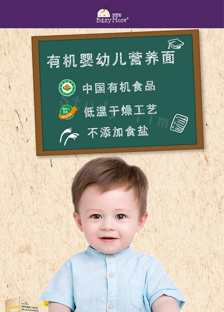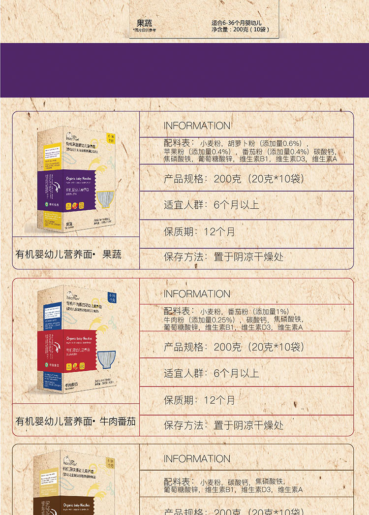 宝思加 婴幼儿有机面条无盐无糖(三种口味混合)200g*9盒
